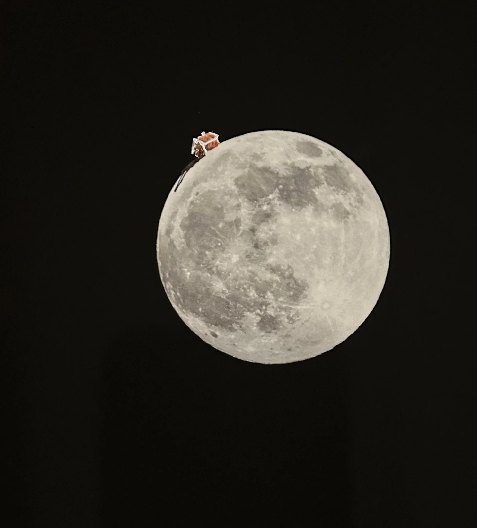 A small red house was placed on the Moon